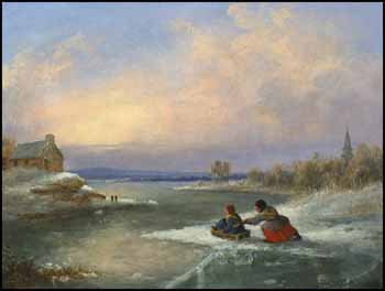 French Canadians Crossing the Frozen St. Lawrence, A View of the Citadel in the Distance