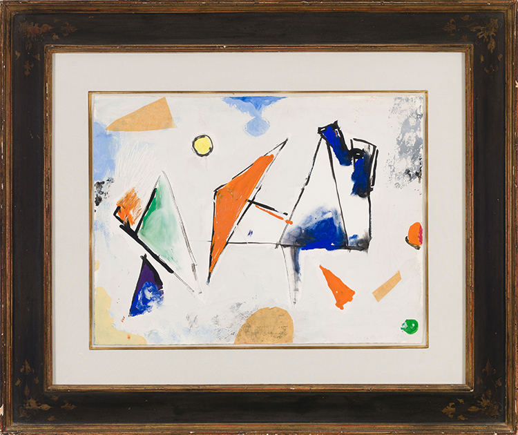 The title of this striking abstract painting pays homage to El Greco (1541 - 1614), the Greek painter and sculptor of the Spanish Renaissance, who was regarded as a precursor of modern art. Colourful forms playfully float across bright, soft, amorphous colour fields, and the triangular shapes bring a connotation of sails moved by the wind, infusing the painting with a feeling of freedom and movement. Marini must have favoured this painting, for in 1969, he produced a lithograph based on it, entitled From Color to Form VIII.