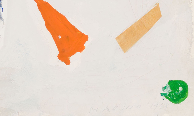 Marino Marini was an internationally renowned Italian sculptor and painter. He studied painting at the Academy of Fine Arts in Florence, and his early years were devoted to drawing and painting. In 1942, he became a professor of sculpture at the Accademia di Belle Arti di Brera in Milan, where he settled permanently in 1946. He won the Grand Prize for Sculpture at the Venice Biennale in 1952. Although best known for his sculpture, particularly his mythical horse and knight subjects, he continued to paint, showing his paintings for the first time in 1963 at the Toninelli Arte Moderna in Milan. In 1973, a permanent installation of his work opened at the Galleria d’arte moderna in Milan, and in 1988, the Museo Marino Marini was inaugurated in Florence.The title of this striking abstract painting pays homage to El Greco (1541 - 1614), the Greek painter and sculptor of the Spanish Renaissance, who was regarded as a precursor of modern art. Colourful forms playfully float across bright, soft, amorphous colour fields, and the triangular shapes bring a connotation of sails moved by the wind, infusing the painting with a feeling of freedom and movement. Marini must have favoured this painting, for in 1969, he produced a lithograph based on it, entitled From Color to Form VIII.