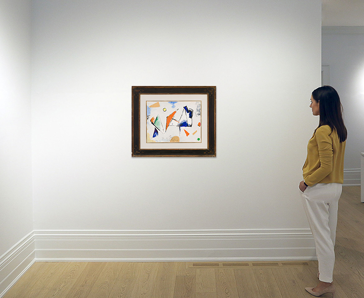 Marino Marini was an internationally renowned Italian sculptor and painter. He studied painting at the Academy of Fine Arts in Florence, and his early years were devoted to drawing and painting. In 1942, he became a professor of sculpture at the Accademia di Belle Arti di Brera in Milan, where he settled permanently in 1946. He won the Grand Prize for Sculpture at the Venice Biennale in 1952. Although best known for his sculpture, particularly his mythical horse and knight subjects, he continued to paint, showing his paintings for the first time in 1963 at the Toninelli Arte Moderna in Milan. In 1973, a permanent installation of his work opened at the Galleria d’arte moderna in Milan, and in 1988, the Museo Marino Marini was inaugurated in Florence.The title of this striking abstract painting pays homage to El Greco (1541 - 1614), the Greek painter and sculptor of the Spanish Renaissance, who was regarded as a precursor of modern art. Colourful forms playfully float across bright, soft, amorphous colour fields, and the triangular shapes bring a connotation of sails moved by the wind, infusing the painting with a feeling of freedom and movement. Marini must have favoured this painting, for in 1969, he produced a lithograph based on it, entitled From Color to Form VIII.