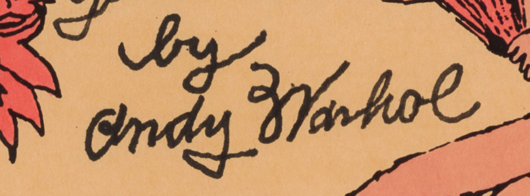 This work is the cover page of the bound book with 22 pages (including two blank pages); 20 plates: 15 plates, offset lithograph and watercolour on paper, 5 plates, offsett lithograph on paper. The lettering was done by Warhol's mother, Julia Warhola.