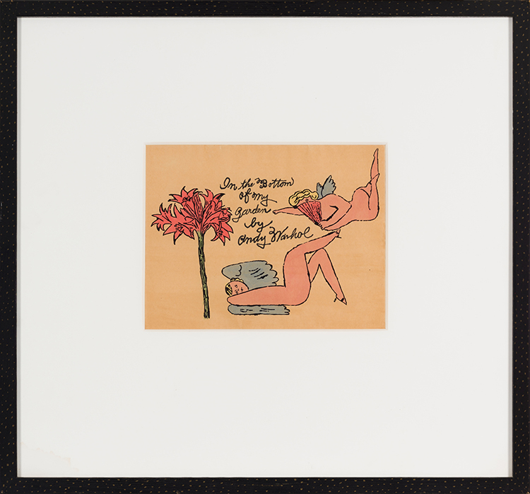 This work is the cover page of the bound book with 22 pages (including two blank pages); 20 plates: 15 plates, offset lithograph and watercolour on paper, 5 plates, offsett lithograph on paper. The lettering was done by Warhol's mother, Julia Warhola.