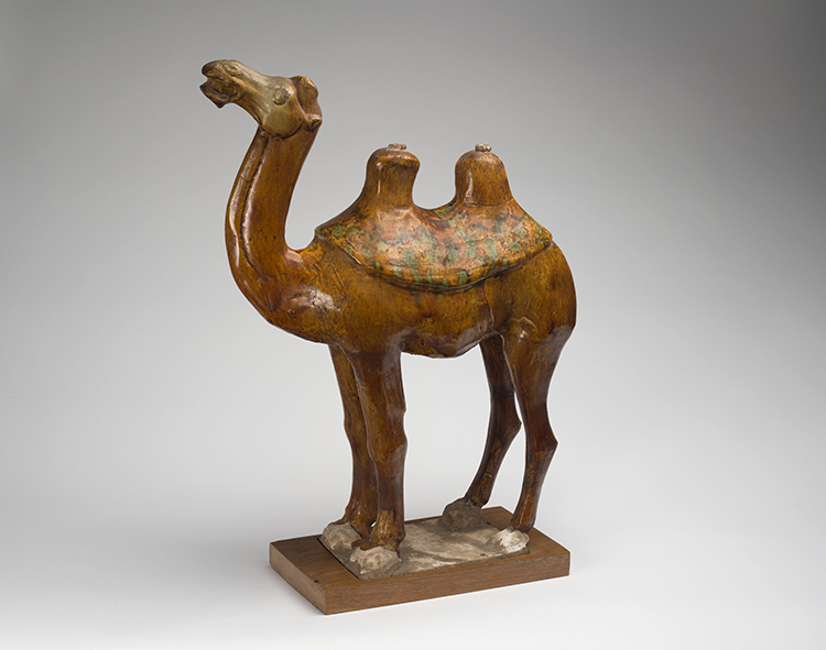 A Large Chinese Sancai Glazed Earthenware Model of a Camel, Tang Dynasty (618-907 CE)