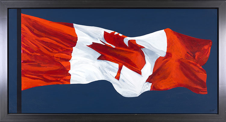 Viewed from below, depicted billowing in the wind, Pachter elevates the Canadian flag as the symbol of a country, nation and place to something dynamic, theatrical and grand. Pachter places the Canadian identity at the centre of his artistic investigation and, as asserted by literary critic David Staines, “compels us to reconsider these familiar signposts in our collective memory.” The undulating flag is a signature emblem that encapsulates Pachter’s investigation of, and devotion to, the Canadian identity.